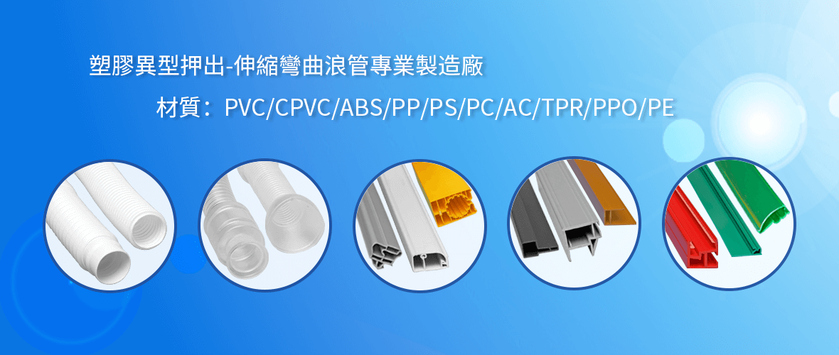 PVC、CPVC、ABS、PP、PS、PC、AC、TPR、PPO、PE 等,可依客戶需求調整硬度、耐候性、抗衝擊性及環保材質配方,廣泛應用於不同產業場域。